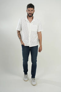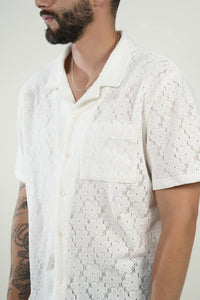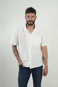 Una camisa manga corta en tejido calado blanco, diseñada para quienes buscan un look fresco, moderno y con un toque distintivo. Su patrón abierto aporta textura y transpirabilidad, ideal para climas cálidos, outfits playeros o estilos casuales con personalidad.