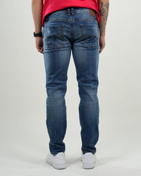 Luce un estilo moderno y relajado con estos jeans azul medio de corte ajustado. Diseñados con detalles rasgados y un efecto desgastado en zonas estratégicas, estos pantalones son ideales para un look urbano con actitud. Confeccionados en mezclilla suave y elástica para brindar comodidad y libertad de movimiento durante todo el día. Un básico imprescindible para combinar con camisetas, camisas o chamarras en cualquier temporada.