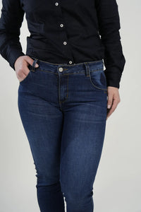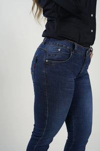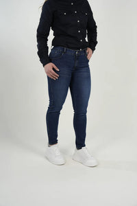 Un jean clásico y versátil diseñado para realzar la figura con un ajuste ceñido y cómodo. Su tono azul oscuro y elástico equilibrado lo convierten en una prenda esencial para cualquier día, combinando perfectamente con camisas, polos o camisetas.