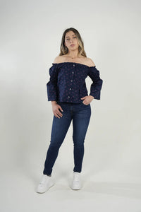 Una blusa fresca, femenina y diferente, perfecta para darle un toque especial a tus outfits. Su diseño off-shoulder con elástico ofrece un ajuste cómodo y estilizado, mientras que el estampado en tonos rosados aporta un detalle moderno y delicado. Ideal para días cálidos o looks casuales con estilo.