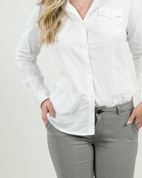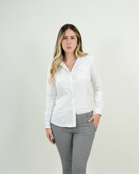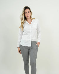 La Camisa Blanca Clásica es un básico atemporal que nunca pasa de moda. Con un diseño limpio y sofisticado, se convierte en la prenda versátil ideal para combinar con jeans, pantalones formales o faldas.