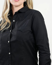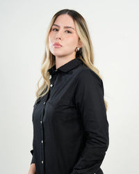 La Camisa Mujer Negra Clásica "Midnight Elegance" es un básico sofisticado que combina estilo y versatilidad. Diseñada para mujeres que buscan una prenda atemporal, ideal tanto para ocasiones formales como para un look casual con carácter.