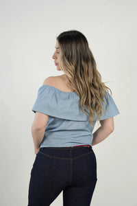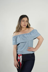 Diseño: Blusa off-shoulder con elástico en la parte superior y volante amplio.