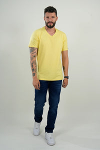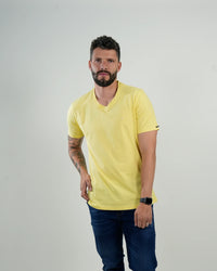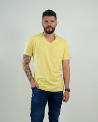 Dale un toque vibrante a tu look con esta camiseta amarilla de cuello en V. Diseñada para ofrecer comodidad y estilo, su corte clásico y tejido suave la convierten en la prenda ideal para cualquier ocasión casual. Perfecta para combinar con jeans, bermudas o pantalones deportivos, esta camiseta es una opción fresca y versátil para tus días de verano. Con un pequeño logo discreto en el pecho y un diseño minimalista, destaca por su sencillez y elegancia relajada.