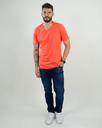 La Camiseta Cuello V Naranja – Masculina es una prenda fresca, moderna y llena de energía. Su vibrante tono naranja aporta un toque audaz a cualquier look, mientras que el corte clásico de cuello en V ofrece comodidad y versatilidad. Ideal para quienes buscan un estilo casual con un punto de distinción.
