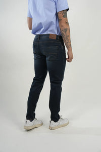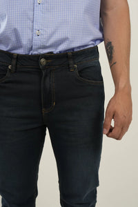 Este jean slim para hombre combina comodidad y estilo en una silueta moderna que se ajusta al cuerpo sin perder movilidad. Su tono azul oscuro ofrece un acabado limpio y versátil que funciona tanto para looks casuales como para combinaciones más formales. Fabricado en denim suave con excelente elasticidad, se adapta a cada movimiento y mantiene su forma durante todo el día. Las costuras en contraste y los bolsillos funcionales completan un diseño clásico ideal para uso diario.